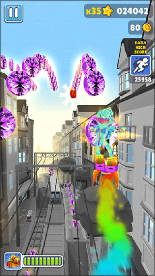 4、我这儿有两种过法,一个“硬刚流”,一个“猥琐流”,你们自己看着选。想硬刚,装备得跟上,必须得有超级跑鞋的大跳效果。瞅准时机跳上火车顶,站稳了,看后面还有火车,再跳起来,然后迅速往下滑,落到后面那辆车的车顶上。