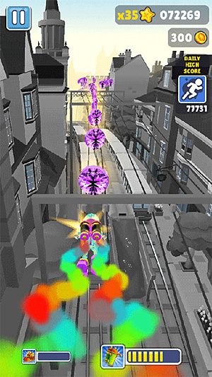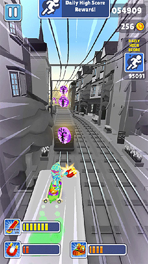 3、左右横跳。在三条道上来回切换,躲火车、撞墙什么的,这是最考验反应速度的。