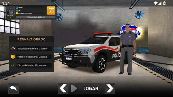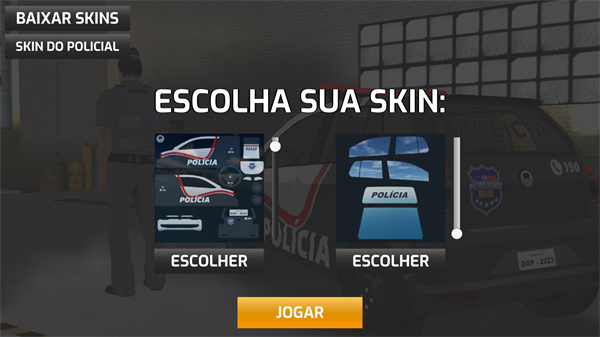 想体验一把在巴西街头当警察的感觉吗?别被那复古的界面和看不懂的鸟语劝退,直接点“JOGAR”就能开干!车库里有几辆破车随你挑,设置里还能调画面改操作。上手超简单,开上你的警车,立刻开始在巴西街头巡逻执法,享受最纯粹的驾驶和追捕乐趣吧!