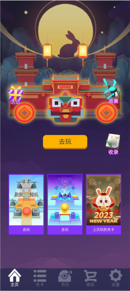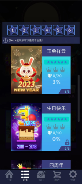 2、关卡列表里找到第六个,就是那个玉兔祥云模式,看个广告就能解锁开玩。