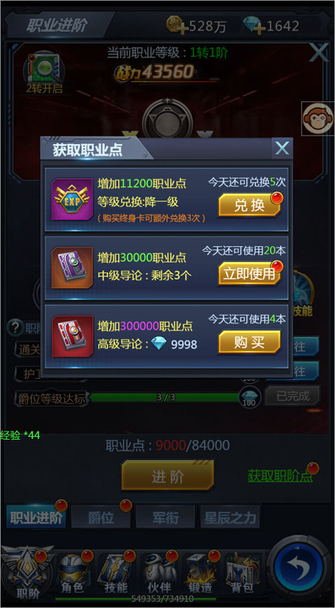 2、在游戏里,你转生等级越高,能拿到的职业点数也就越多。职业点数这玩意儿主要靠两种方式搞到手。一种是降级换,用你角色的等级去换点数,不过等级低于81级就不能换了,这设定有点坑。另一种就是氪金,直接用钻石买“导论”,分中级和高级两种。