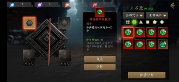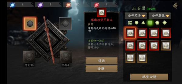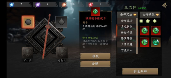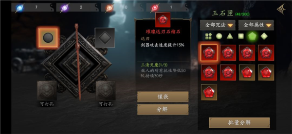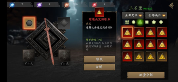 - 三角形的橙色宝石包含疾咒、凝气、金芒这几种属性。。