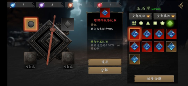 - 五边形的红色宝石能够提供迅刃、蓄劲、精芒这几项属性。。