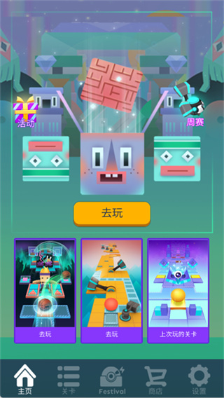 滚动的天空是一款惊艳的街机游戏。你将扮演一个在丛林或海洋上滚动的球体,聆听动感的音乐,带着球体穿越神奇的迷宫。点击屏幕,让球体以之字形移动。与其用眼睛观察,不如用你灵巧的耳朵和手指,观察舞动的天空线条,让球体以之字形移动,避开障碍物。绚丽的3D特效场景让你体验虚拟的陷阱和障碍,这是一款休闲又令人上瘾的滚动球游戏,在天空中滚动,挑战你的速度和反应极限。