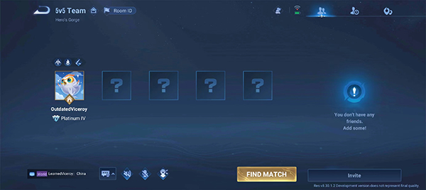 3、咱们先选个5v5试试水,点开始匹配。系统找到人之后,会自动把你拉进房间。