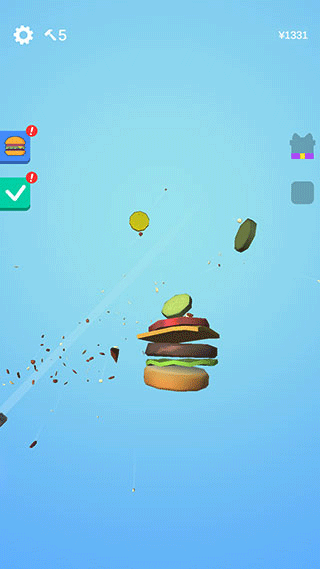 6、切东西的瞬间非常爽,还能看到碎片乱飞的特效,解压感拉满。