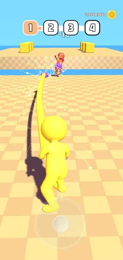 动能无线发的这个动作闯关游戏,老玩家应该都知道他们家一贯的调性,就是那种简约到有点简陋的火柴人画风,配上魔性上头的闯关。这游戏也不例外,不过加了点新东西,比如各种花里胡哨的皮肤。游戏里你就是个拳头能伸老长的拳击手,通过划屏组合出直拳、勾拳,或者后仰躲对面的攻击。每个关卡的对手和地形都不一样,玩起来不会太腻。核心思路就是利用场上的柱子啥的当掩体,看准机会一拳抡过去,打得他没法还手,最后把他捶下台就算赢。每过一关都能拿到金币,这钱可以用来升级你的攻击、血量,甚至让你胳膊变得更长,打得更远。攒够了钱还能去商店解锁新拳套,算是唯一的收集元素了。