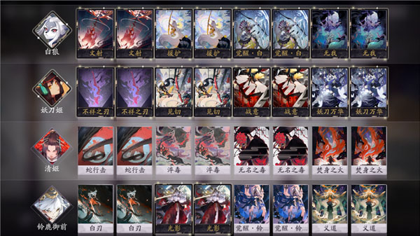 喜欢快攻抢脸的,可以试试白狼、妖刀姬、清姬加铃鹿御前的组合,靠妖刀姬的爆发快速带走对面,其他三个式神负责用直伤压低对面血线,让他不敢随便用“燃魂”。