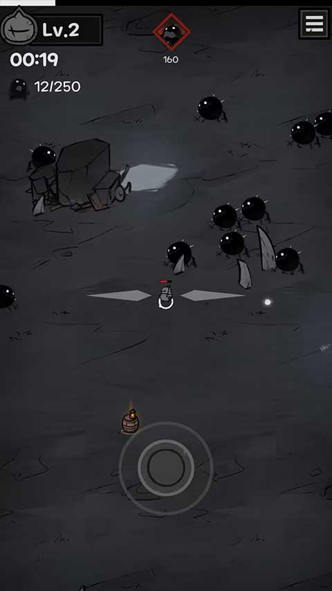 1、主角是个看着有点胖乎乎的骑士,任务就是在伸手不见五指的黑暗里,把冒出来的怪物都给清理掉。