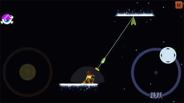 3、进了游戏,你就用屏幕右边来瞄准你想跳的地方,松手角色就飞过去了。大家看下面这张截图,就是这么个操作逻辑。