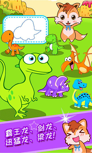 儿童恐龙是一款超级好玩的休闲游戏,有两个不同的模式可以体验,在游玩的过程中能够认识各种不同的恐龙,比如霸王龙、剑龙、迅猛龙和梁龙等,再学习的过程中还可以和恐龙交朋友,可以得到全新的玩法体验。