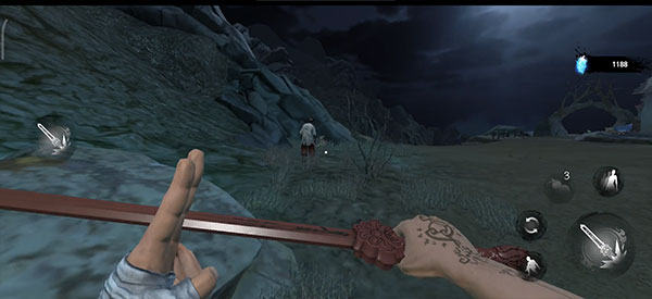 这一段路有三个小怪,挺好打的。小怪发现你的时候会愣一下,趁这个空档用桃木剑上去砍。如果没砍死,就边打边退,看到它抬手要攻击了就赶紧按闪避。