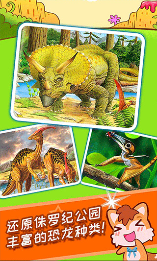 儿童恐龙游戏是一款学习思考的游戏,里面有很多恐龙的知识和百科,透过游戏让孩子增加恐龙的知识之余,还可以加强思考能力,因为有拼恐龙的拼图游戏可以玩,玩耍加上学习知识更容易记得,真的是事半功倍,想让喜欢恐龙的孩子更了解恐龙的话,就快来下载给孩子玩看看。