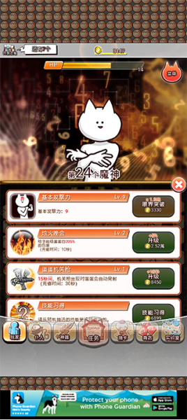 3、另外,游戏里得注意自己的技能。钱够了就赶紧去升级技能,别攒着。为了更快通关,打出更高伤害,建议优先点第二个技能,那个能让你刷金币的速度变快!有钱了才能把伤害堆上去嘛!
