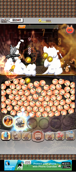 4、看到下面那些金蛋素了没?对着它们疯狂点击,就能攻击魔神了。