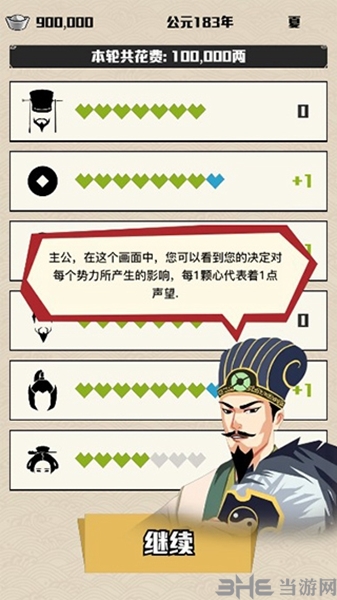 5、这里能清楚看到每个势力具体有多少影响力,一颗红心就代表一点声望。