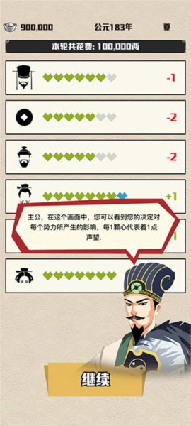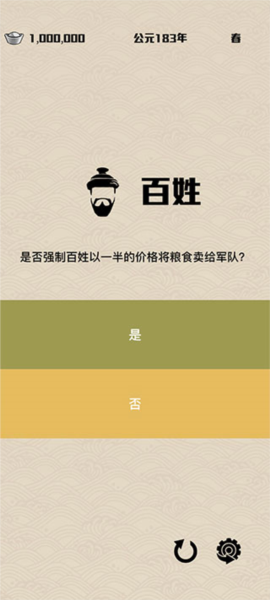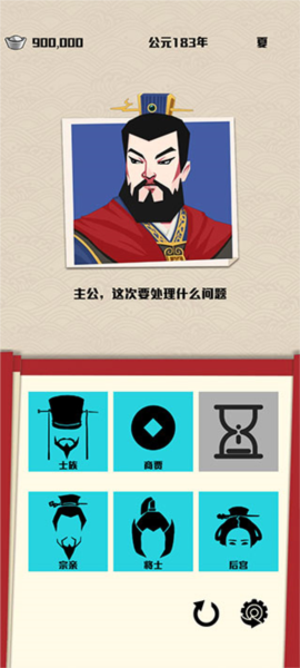 4、每个回合开始前,你都可以选一个势力,处理跟他们相关的事。比如你点了“百姓”,就会跳出个问题让你选,你的选择会直接影响势力的声望。