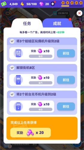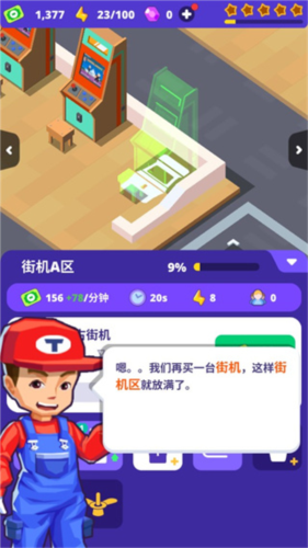 10、说白了,就是让你体验一把当电玩城老板的感觉,享受模拟经营的乐趣。赚了钱就能买更大的地,把店面扩建得更气派。