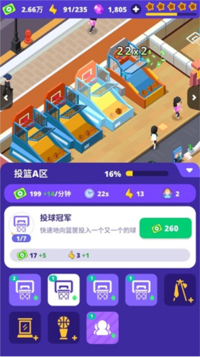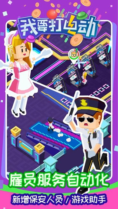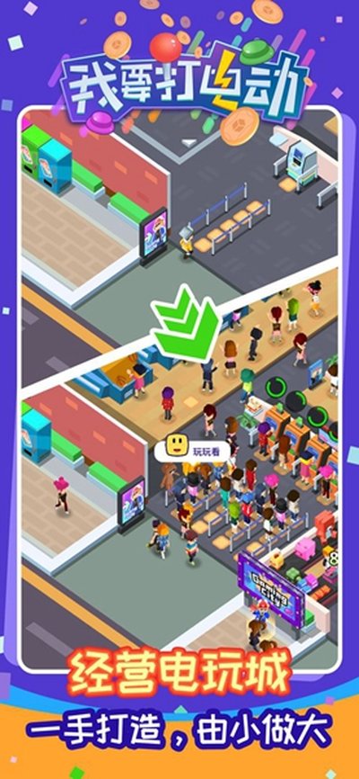 谁小时候没在电玩城里留下点遗憾呢?要么是技术太菜,一个币玩不到三分钟;要么就是想玩的机器前面总围着一堆人,只能在后面干看着。现在好了,风水轮流转,在这游戏里,你,就是老板本人。靠自己的商业头脑,把一个破破烂烂的电玩城给盘活。从我们这代人最熟悉的街机区开始,慢慢解锁赛车、跳舞机,甚至还有VR区,把店面搞得越来越高级,让顾客玩得舒坦。不过得留神,有些客人素质不咋地,会砸机器、在店里抽烟,得赶紧把他们请出去。除了电玩城,还能在旁边开个卡丁车场、奶茶店啥的,把这块地盘打造成娱乐一条街,让客人来了就不想走。生意做大了,还能把分店开到商业区、海滩甚至外太空去,让全宇宙的玩家都能打上电动。游戏里还有些隐藏内容,像是豪华VIP包间、电竞赛事啥的,得慢慢探索。