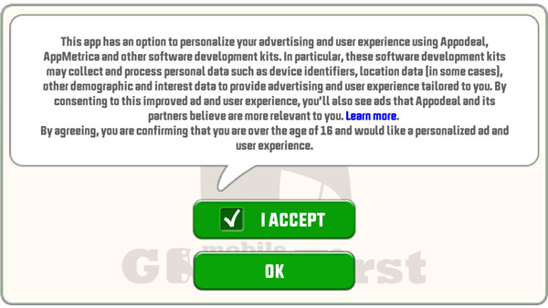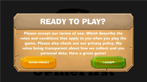 1、游戏下好打开,先点这个“I ACEGERT”按钮,就是同意条款的意思。