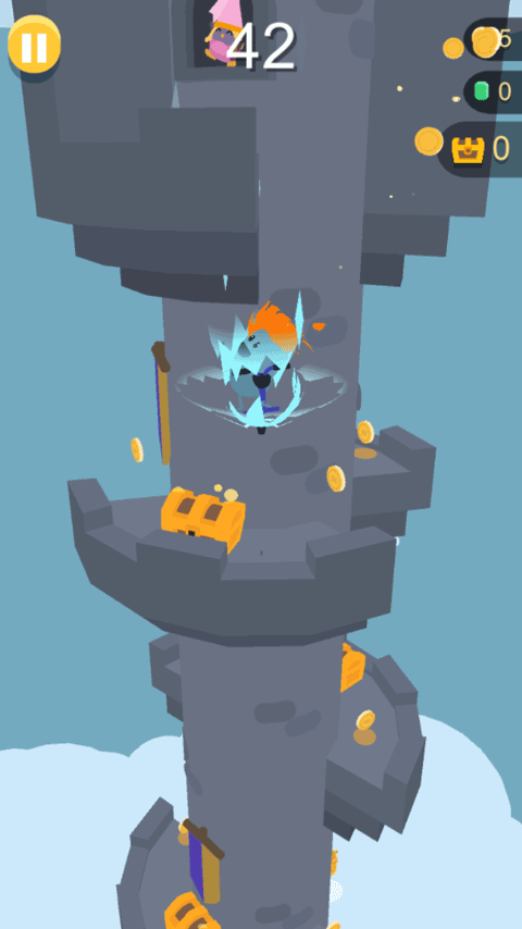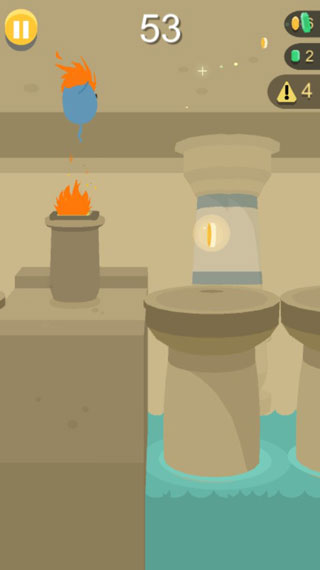 这个玩法很简单,控制角色弹跳,别撞到天上的小鸟,也别掉进黄色的岩浆里。弹跳的时候尽量踩宝箱或者金币,能帮你更快地攒钱。