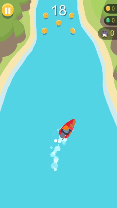 用摇杆控制小船左右移动,吃金币和钻石,别撞上迎面来的东西就行。