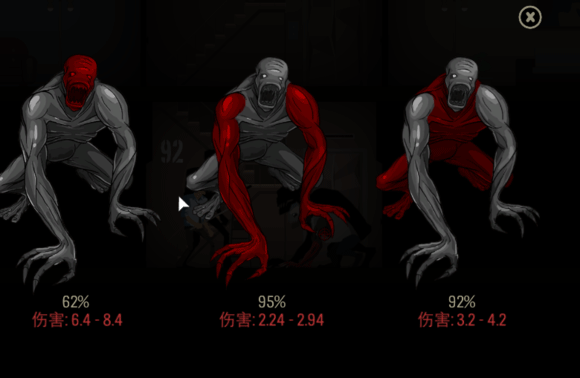 5、战斗时,你可以选择攻击怪物的不同部位,每个部位的命中率和伤害都不一样(打头伤害最高是常识,但为啥打胳膊命中率最高呢)。