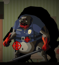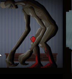 手上的鞭子抽人啪啪响!普通攻击伤害一般,比起前面那两种算是强了点,有把厨刀的话还能凑合打打。它在掉血的时候,有一定概率会吐出内脏攻击你,伤害在10-12左右(不太确定),被这招打中还会中毒。