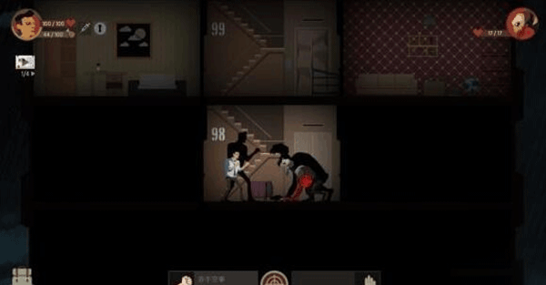 3、每一层楼都分成三个区域:楼梯间和左右两个房间。你需要一个一个地去探索,找资源和线索。
