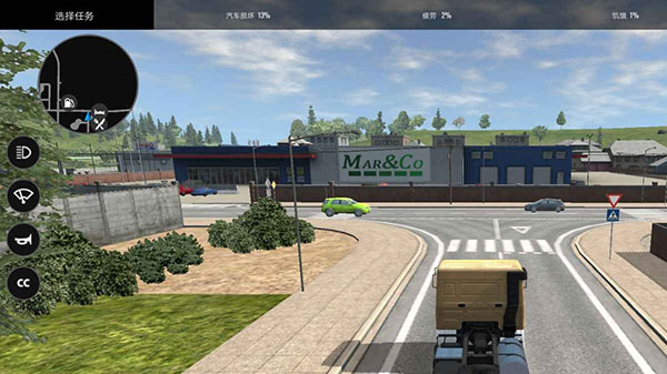 瞅瞅下面这张图,欧洲城市的风貌还原得有模有样,路边的环境都挺写实。你可以发动你的大卡车,在欧洲的公路上尽情驰骋,跑遍18个地区,沿途看看风景,惬意得很。