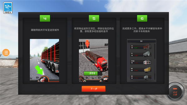 (3)多跑几趟,等级高了就能解锁车库里的新卡车和拖车了。