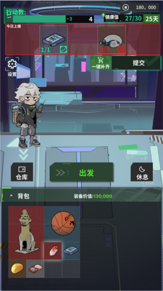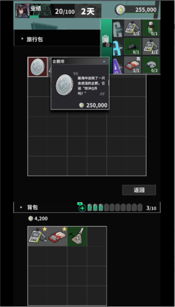1.目前我玩下来,一局的周期是30天,专心玩的话大概一个钟头能通一轮。给新上手的朋友提个醒,搜到的东西别一股脑全卖了,尤其是红色和金色的高价值物品,留着放展示柜吃利息。这笔钱足够你前期每天都租满最大号的背包。每天体力就够搜一次物资,建议地图刷得不好就留点体力别硬闯。到了游戏后期,大概20天往后,任务指标会变得非常离谱,这时候就得看情况,要么放弃一些高难度的,要么找个消耗少的任务直接花钱补齐,只要运气别太差,钱和业绩顶得住,通关还是稳的。