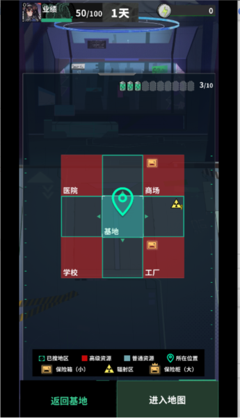 2.地图上有时候会刷出辐射区,在这种地方待久了会持续消耗体力值。辐射等级越高的区域,好东西越多,但体力掉得也跟流水一样快。进了这种地方,别磨叽,手速快点搜完就溜。