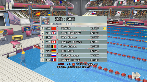 4、画面嘛,有一说一,走的是写实风。让你感觉真像在奥运赛场上一样,环境细节做得还行。打破纪录的时候还有专门的庆祝动画,小小的仪式感还是有的。UI稍微有点复古,但功能确实没毛病。