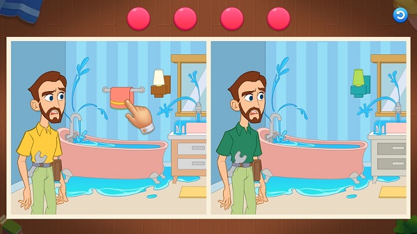玩法就是经典的“大家来找茬”,对比两张图,把不一样的地方点出来。上面那个粉色的圆圈,就是告诉你总共有几个不同点。