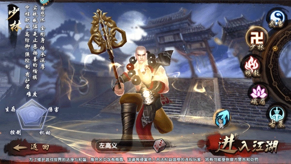 少林,天下武功出少林,这名头不是白叫的。游戏里就是最硬的坦克,没有之一。外家功夫顶尖,皮糙肉厚,往战场前面一站就是一堵墙。招式大开大合,配合自身雄厚的内功,还能反弹伤害,谁打他谁难受。就是那种专门冲在最前面吸引火力的角色,喜欢当团队核心、享受被人群殴快感的,选他就对了。