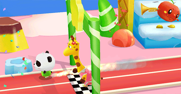 跑道上这金牌争夺战还挺激烈,最后谁能赢?快看,你家娃控制的小飞人已经进入冲刺阶段了,加速,冲!赢了!