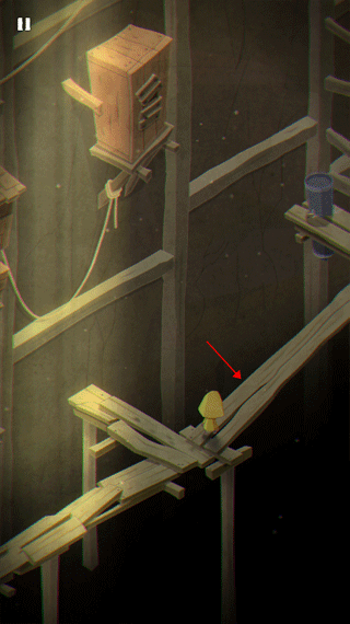 3、这第一关有不少鸽子,路过这块木板的时候得留神,看它快塌了就赶紧狂点屏幕让摩诺冲到安全的地方去。