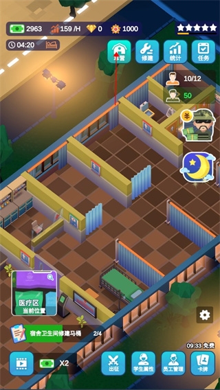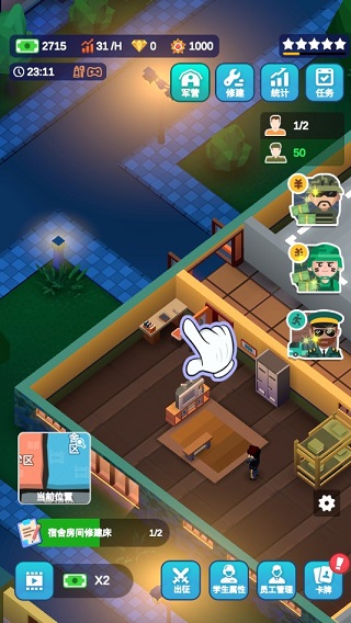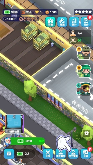 4、通过进入宿舍界面可以增加床位,扩大招生规模并提升整体收益。