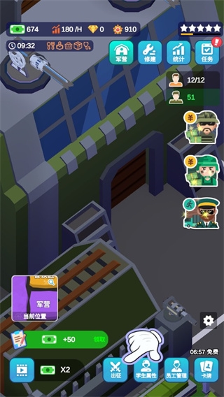 2、完成引导后先进入军营,对士兵进行升级提升基础战力。