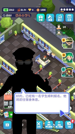 通过员工管理系统可聘请不同人员,如教官、医生与后勤人员,提升整体运作效率。