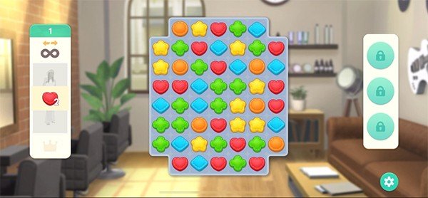 游戏核心为三消玩法,通过交换相邻图块组成三个及以上相同元素,即可完成消除并推进关卡。