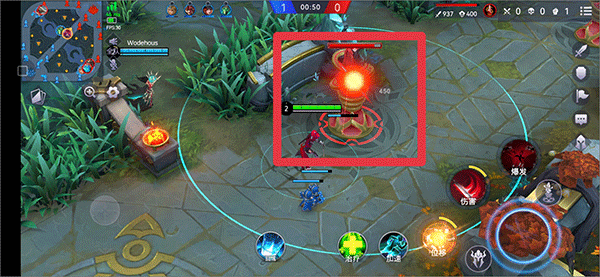 5、游戏开始后通过左侧控制移动,右侧使用普攻与技能,前往各路线推进兵线并攻击防御塔。