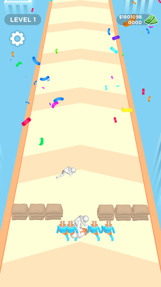 1、在进入关卡前在主页面可以使用金币来购买更多的人数,在跑酷的过程中更简单,在路上需要躲避各种危险的障碍,不然会减少人数;