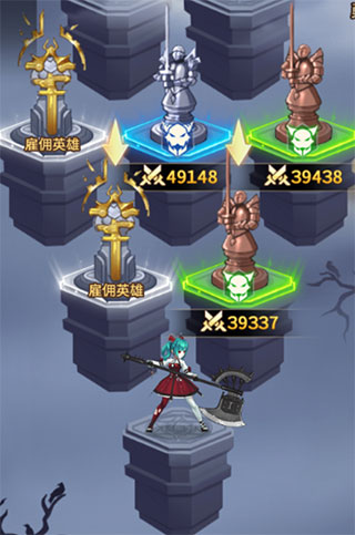(4)深渊迷宫:30级才开,难度中等吧。玩法有点像肉鸽,一路选路线打下去,主要产出迷宫币,能去商店换稀有英雄和道具。想多拿奖励就多选战斗关卡,怕翻车就老实雇个英雄。每打完一关,会给你三个BUFF三选一,帮你打后面的关。