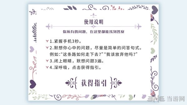1、打开《我的人生解答书》App, 迎面就是一段使用说明。懒得看直接划过, 点击最下面的【获得指引】就行。