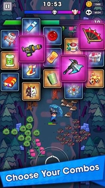 7、打怪升级的时候,会跳出技能三选一的界面,这是肉鸽游戏的老规矩了。不断选新技能来强化自己,有些技能还能组合成更猛的大招,伤害直接爆炸。