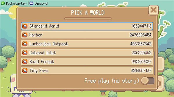3、地图是随机生成的,这点还行,每次开新档都有点新鲜感。每个地图都有个专属的“种子代码”,你可以把这个代码分享给哥们,让他也来玩跟你一模一样的岛屿。