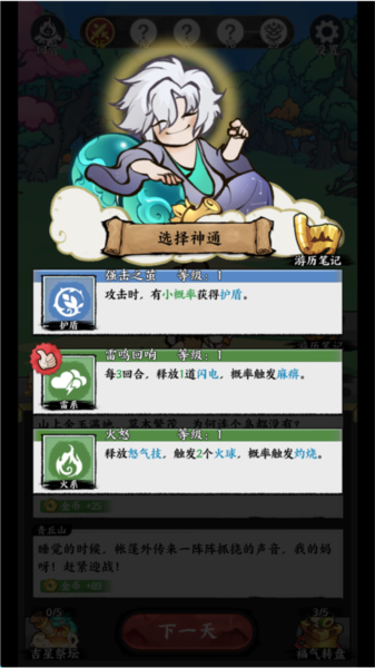 3、打赢之后,系统会给你三个技能让你挑一个,自己看情况选。