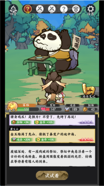 黄帝、伏羲、女娲……这些传说里的大佬不再是遥不可及的NPC。你可以去“抱大腿”,借用他们的神力,激活各种牛X的祝福和技能。有了这些外挂级别的加持,在这片莽荒世界里横着走也不是没可能。讲真,UI稍微有点复古,但功能确实没毛病。